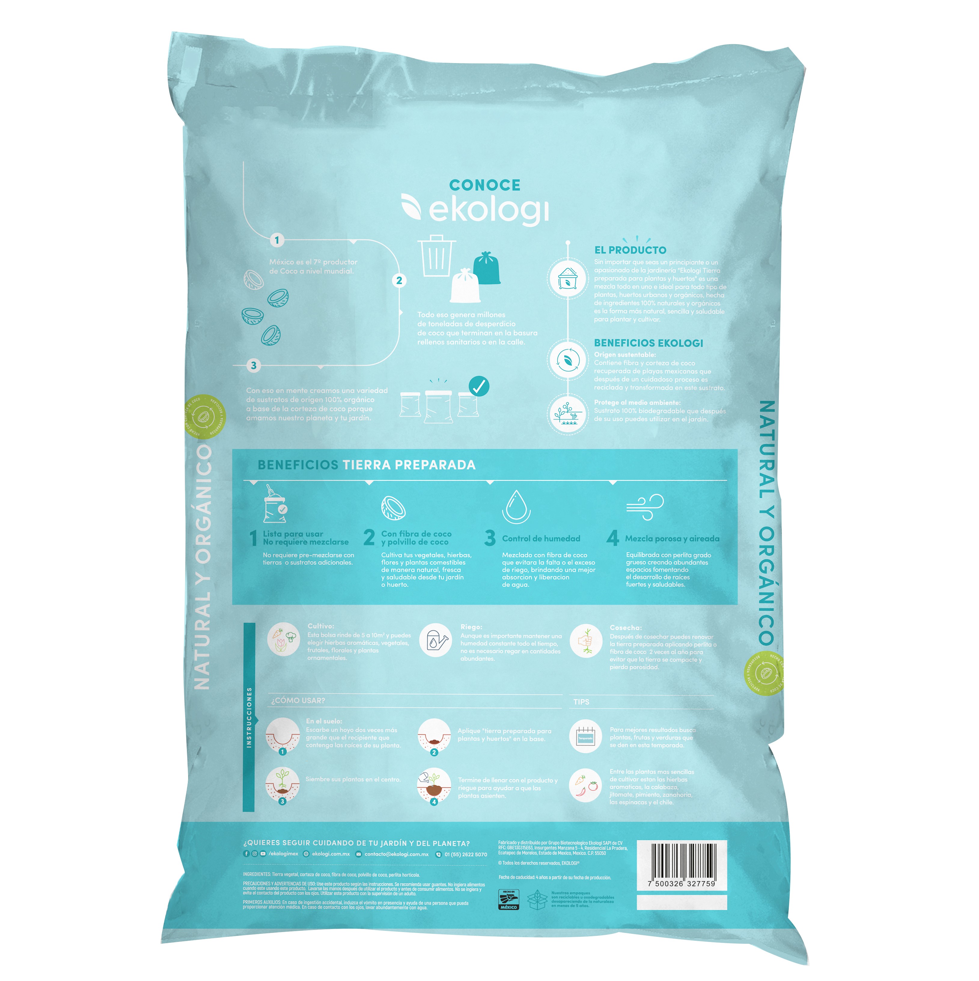 Sin importar que seas un principiante o un apasionado de la jardineria "EKOLOGI Tierra preparada para plantas y huertos" es una mezcla todo en uno e ideal para todo tipo de plantas, huertos urbanos y organicos, hecha de ingredientes 100% naturales y organicos es la forma mas natural, sencilla y saludable para plantar y cultivar.